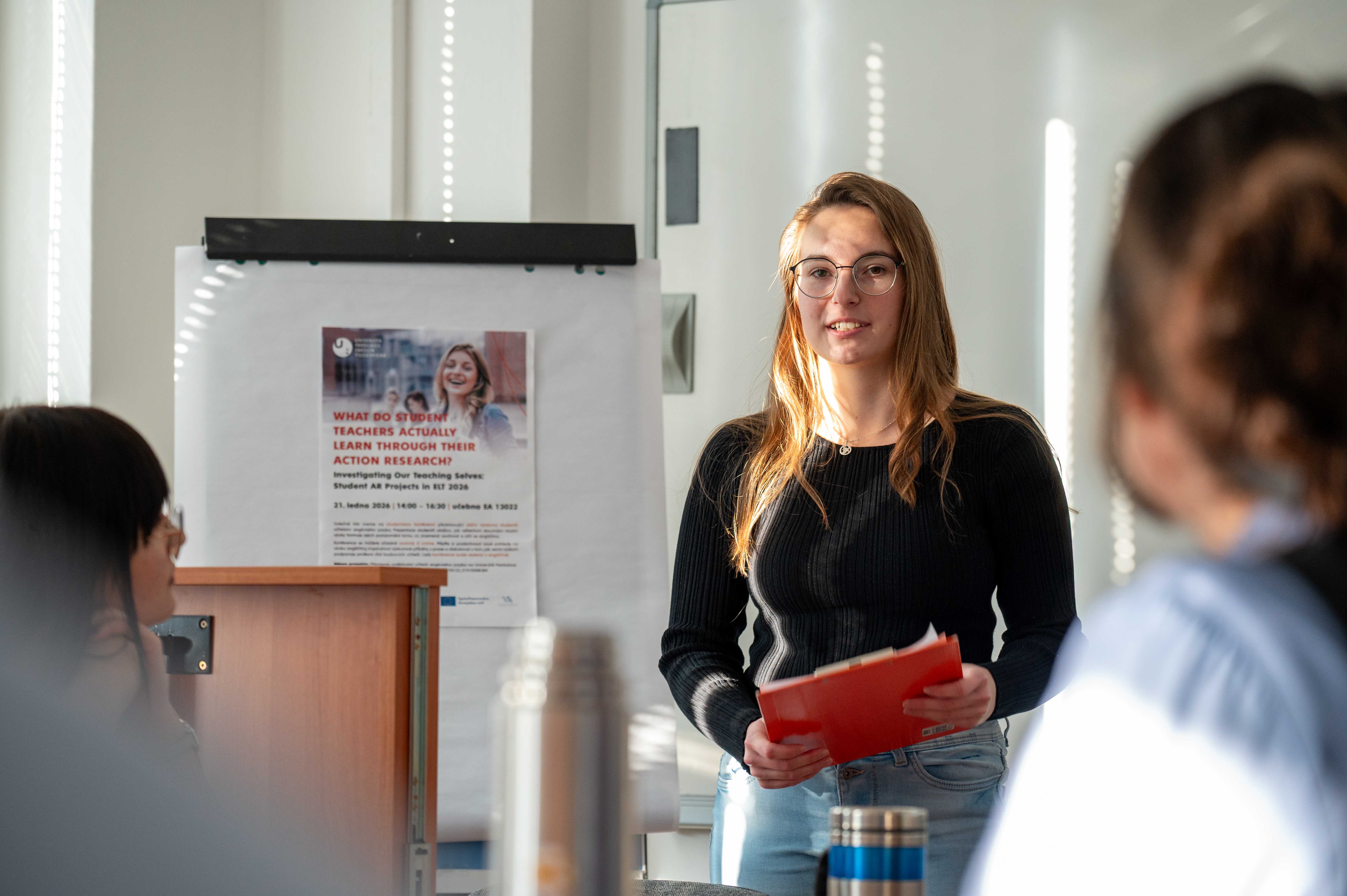 Na Katedře anglistiky a amerikanistiky se 21. ledna 2026 uskutečnila studentská konference Investigating Our Teaching Selves: Student AR Projects in ELT 2026, která nabídla unikátní vhled do myšlení nastupující generace učitelů. Studenti 2. ročníku navazujícího magisterského studia Učitelství anglického jazyka zde představili výsledky svých akčních výzkumů.
