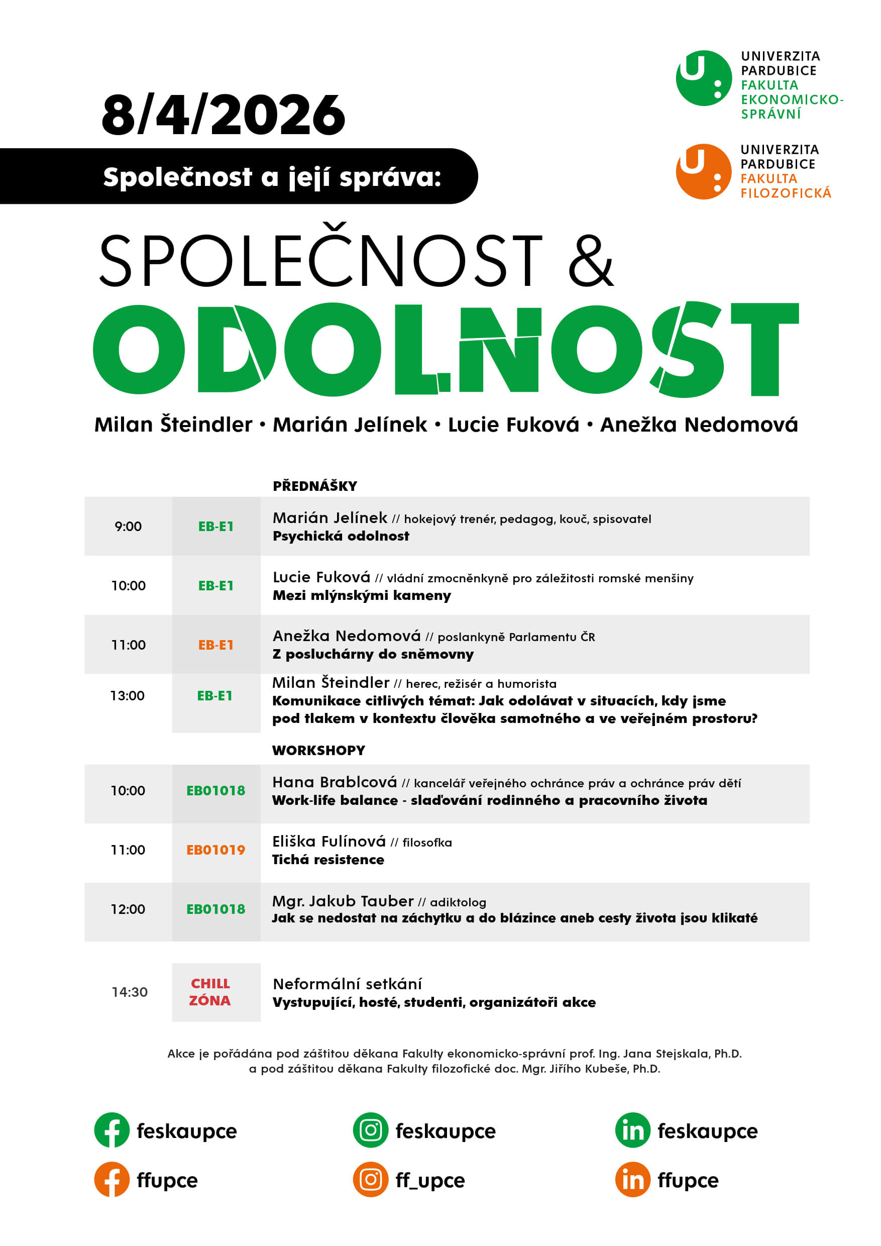 Fakulta ekonomicko-správní a Fakulta filozofická Univerzity Pardubice srdečně zvou akademickou obec na event „SPOLEČNOST A JEJÍ SPRÁVA: Společnost & Odolnost“.